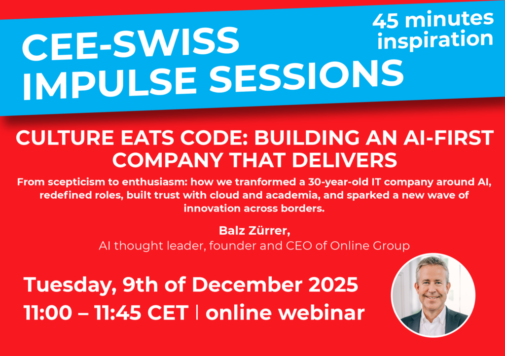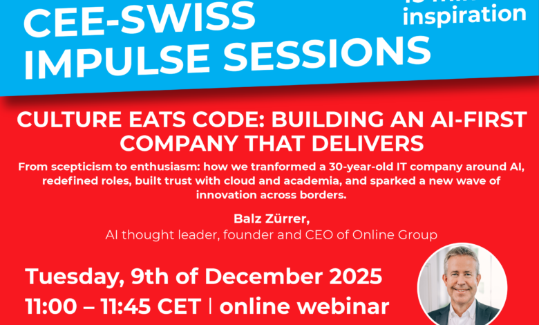 Swiss Albanian Chamber of Commerce is pleased to invite you to the next CEE–Swiss Impulse Session, a 45-minute online webinar dedicated to one of today’s most relevant topics: Building an AI-first company that truly delivers.